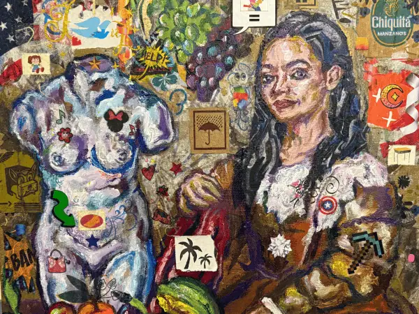 A vibrant small-format exploration of movement, journey, and political landscapes. Mixed media artwork,...